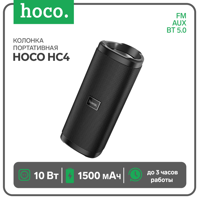 Портативная колонка Hoco HC4, 10 Вт, ВТ 5.0, FM, AUX, 1500 мАч, чёрная