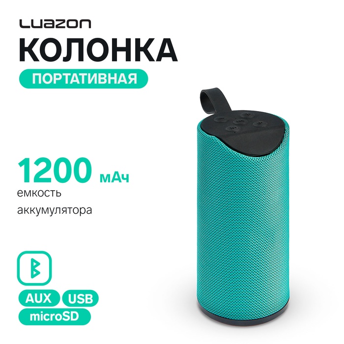 Портативная колонка Luazon LAB-52, 6 Вт, microSD, AUX, USB, зеленая