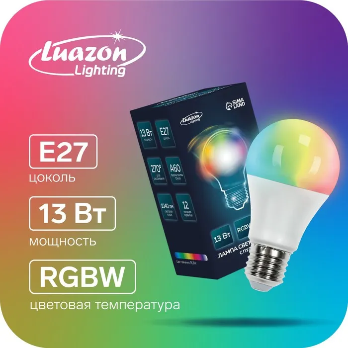 Лампа светодиодная RGB+W, с пультом , А60, 13 Вт, 1040 Лм, Е27, 220 В