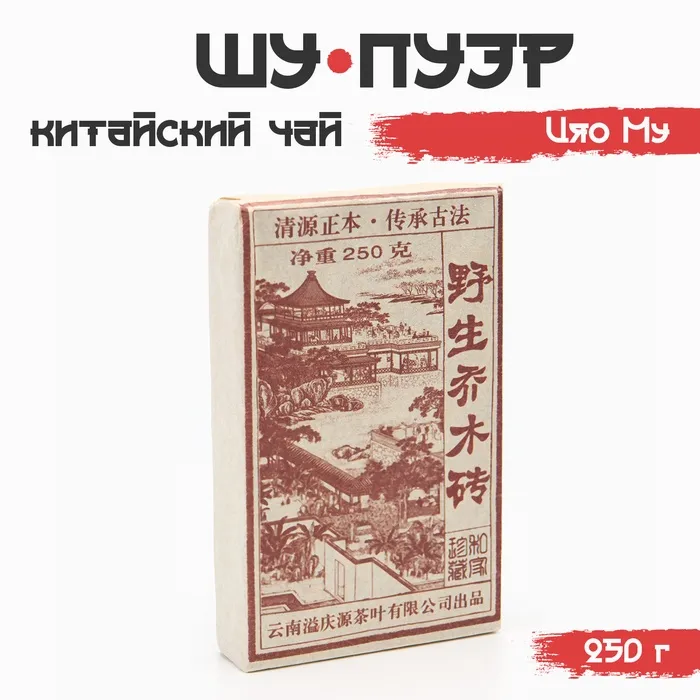 Чай чёрный китайский выдержанный «Шу Пуэр Цяо Му», Юньнань, кирпич, 250 г