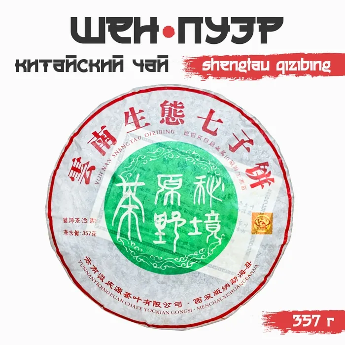 Чай зелёный китайский выдержанный «Шен Пуэр Shengtau qizibing», 2020 г., блин, 357 г