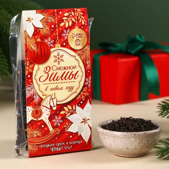 Чай новогодний чёрный «Снежной зимы», вкус: корица и грецкий орех, 50 г.