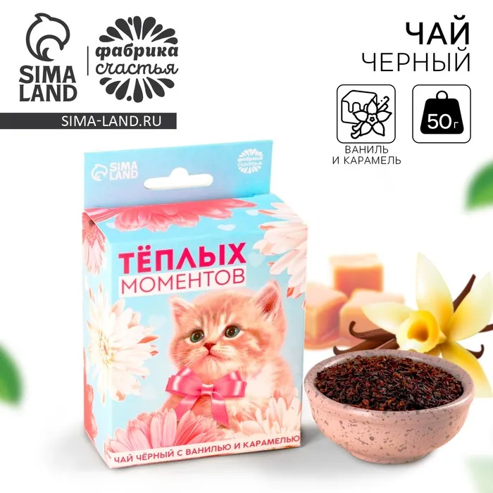 Чай подарочный со вкусом ваниль и карамель «Тёплых моментов» с европодвесом, 50 г.