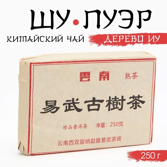 Чай чёрный китайский выдержанный «Шу Пуэр. Дерево Иу», Юньнань, 2012 г., кирпич, 250 г