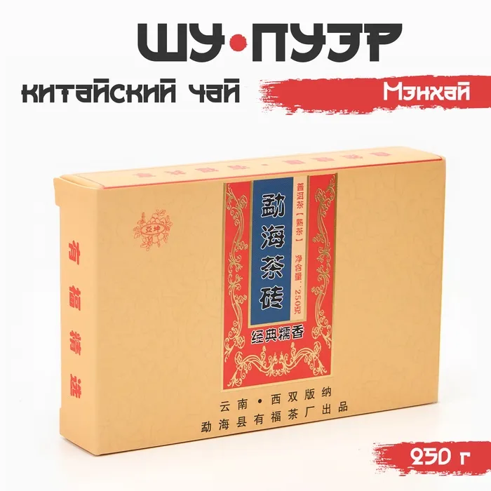 Чай чёрный китайский выдержанный «Шу Пуэр. Мэнхай», Юньнань, 2016 г., кирпич, 250 г