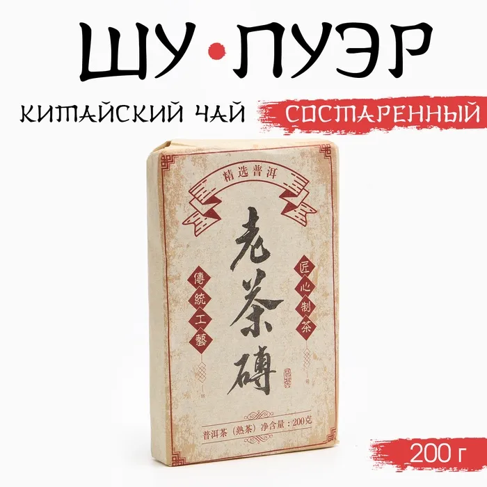 Чай чёрный китайский выдержанный «Шу Пуэр. Состаренный», Юньнань, 2021 г., кирпич, 200 г