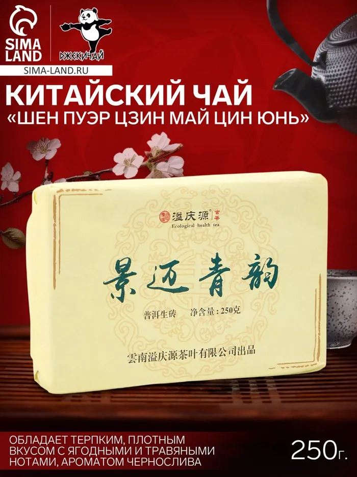 Китайский выдержанный черный чай «Шен Пуэр Цзин Май Цин Юнь»,250 г, 2019 г, Юньнань, кирпич
