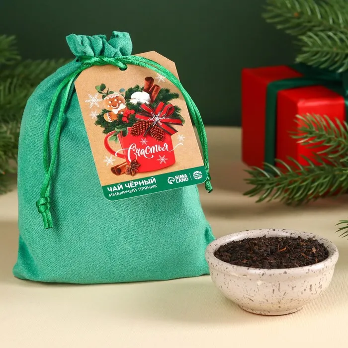 Чай новогодний чёрный «Счастья» с имбирным пряником, 100 г.