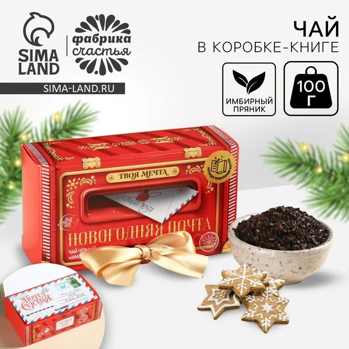 Чай новогодний чёрный «Новогодняя почта» в коробке-книге, вкус: имбирный пряник, 100 г.