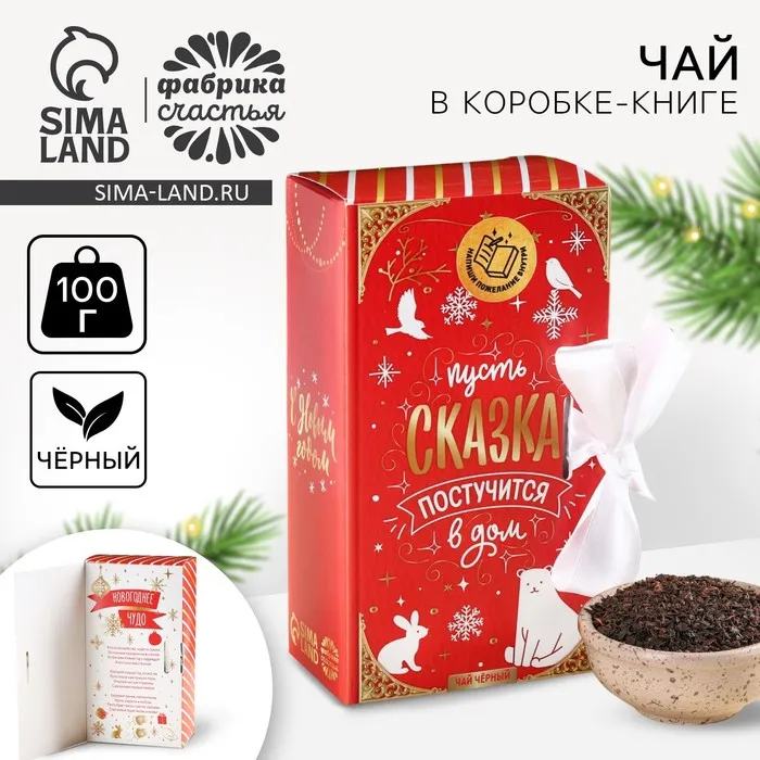 Чай новогодний чёрный «Пусть сказка постучится в дом» в коробке-книге, 100 г.