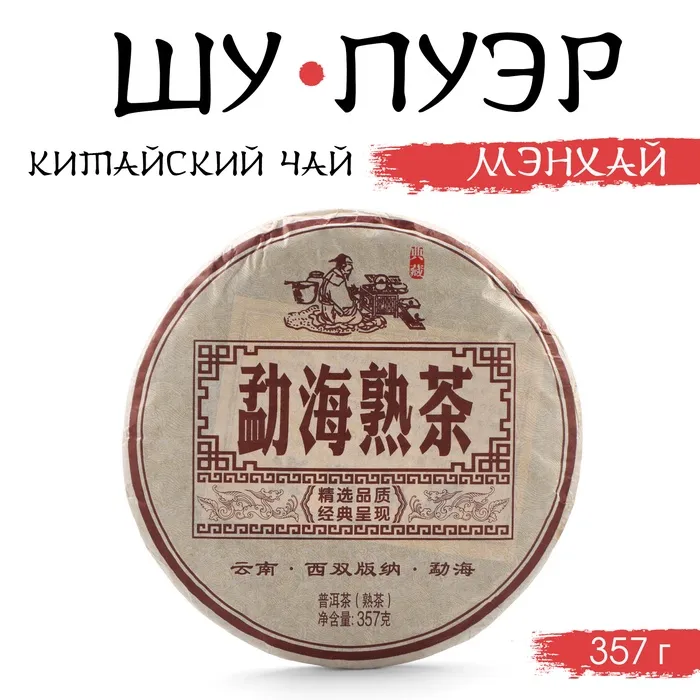 Чай китайский «Шу Пуэр Чуньсян», Мэнхай, 2021 г., блин, 357 г
