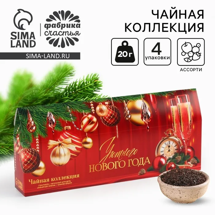 Чай новогодний чёрный «Уютного нового года», 4 вкуса (20 г x 4 шт)