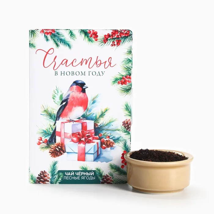 Чай новогодний в открытке «Счастья в новом году», вкус: лесные ягоды, 10 г
