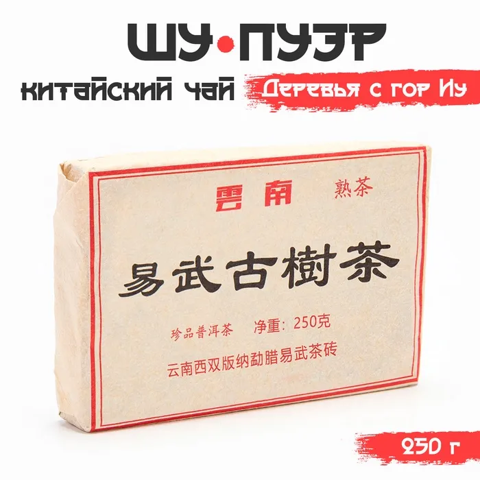 Чай китайский выдержанный «Шу Пуэр. Деревья с гор Иу», Юньнань, 2012 г., кирпич, 250 г