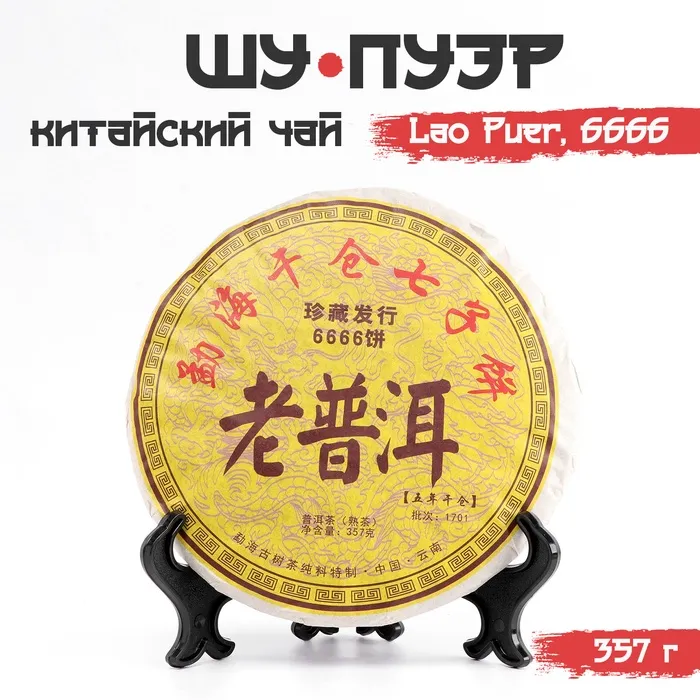 Чай чёрный китайский выдержанный «Шу Пуэр. Lao Puer, 6666», Юньнань, 2013 г., кирпич, 357 г
