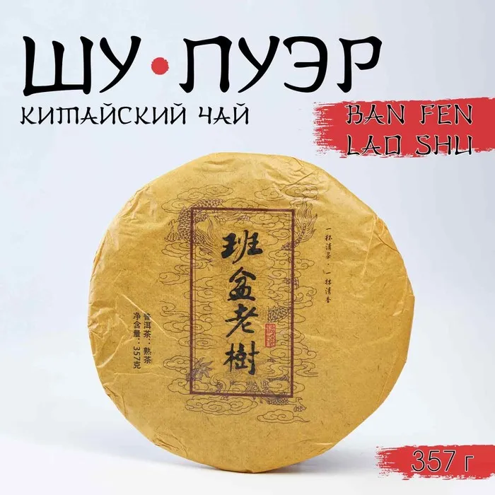 Чай чёрный китайский выдержанный «Шу Пуэр. Ban fen lao shu», Юньнань, 2015 г., блин, 357 г