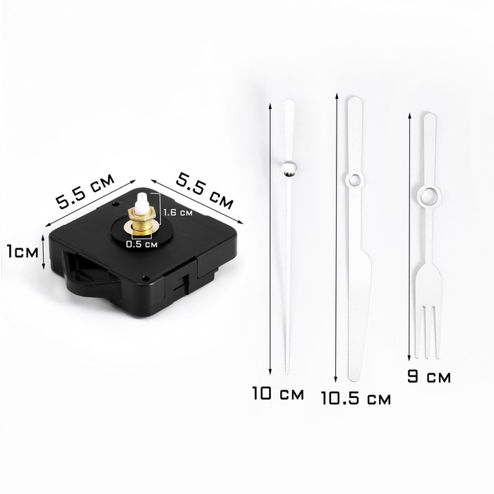 Часовой механизм со стрелками «Соломон-40», плавный ход, шток 16 мм, стрелки 65/92/105 мм