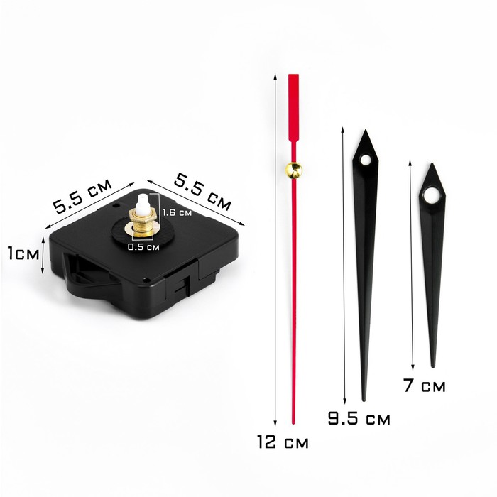 Часовой механизм со стрелками «Соломон-35», плавный ход, шток 16 мм, стрелки 67/100/105 мм