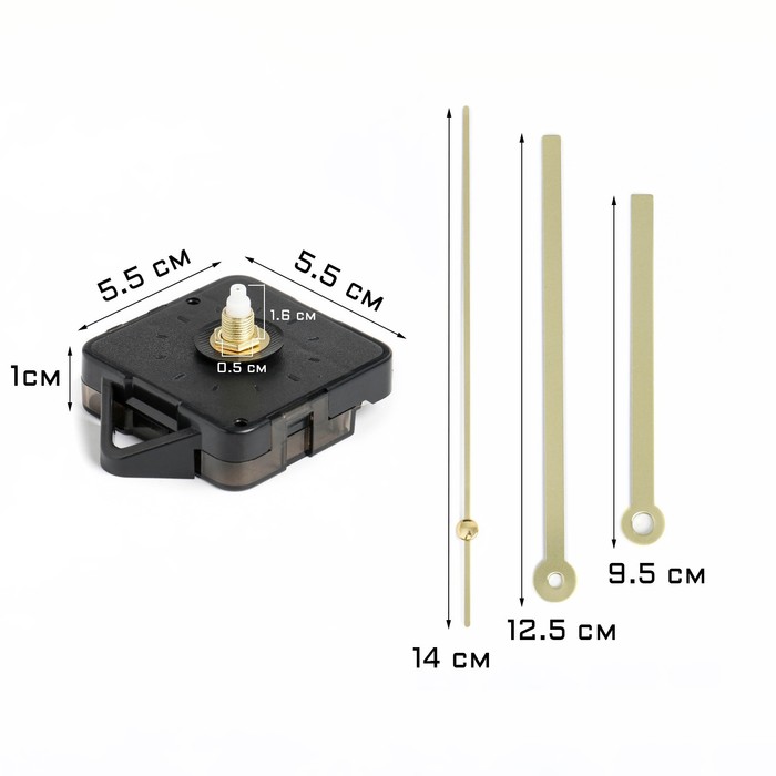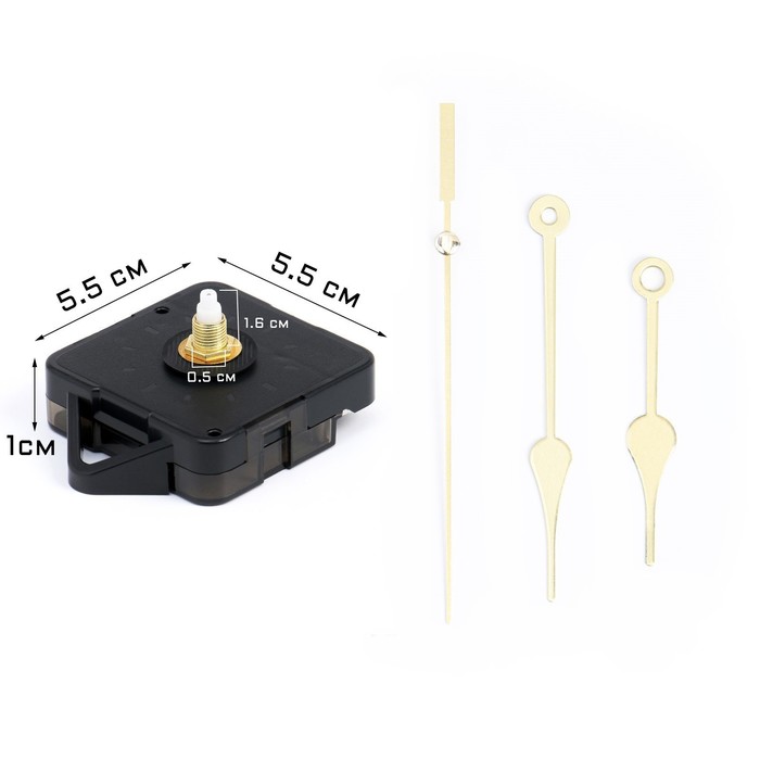 Часовой механизм со стрелками «Соломон-16», плавный ход, шток 16 мм, стрелки 90/120/115 мм, золотистые