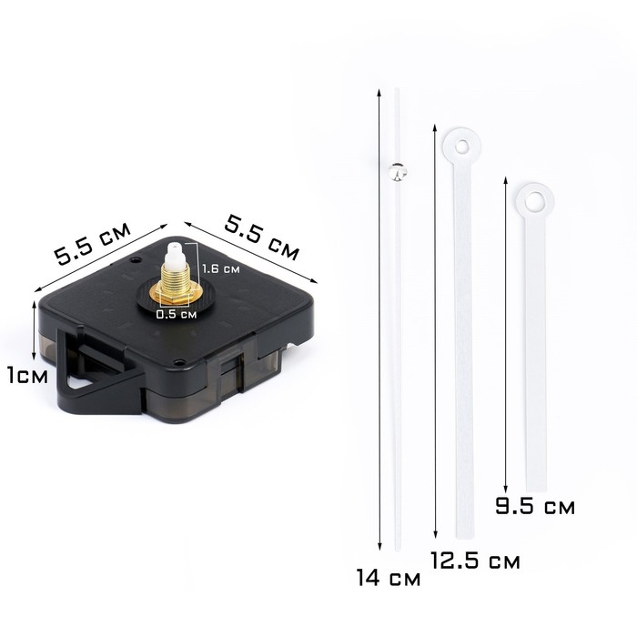 Часовой механизм со стрелками "Соломон-4",, плавный ход, шток 16 мм, стрелки 70/95/120 мм