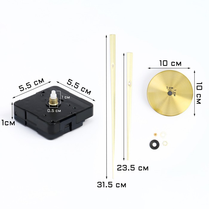 Часовой механизм со стрелками «Соломон-17», плавный ход, шток 10 мм, стрелки 165/245 мм, золотистые