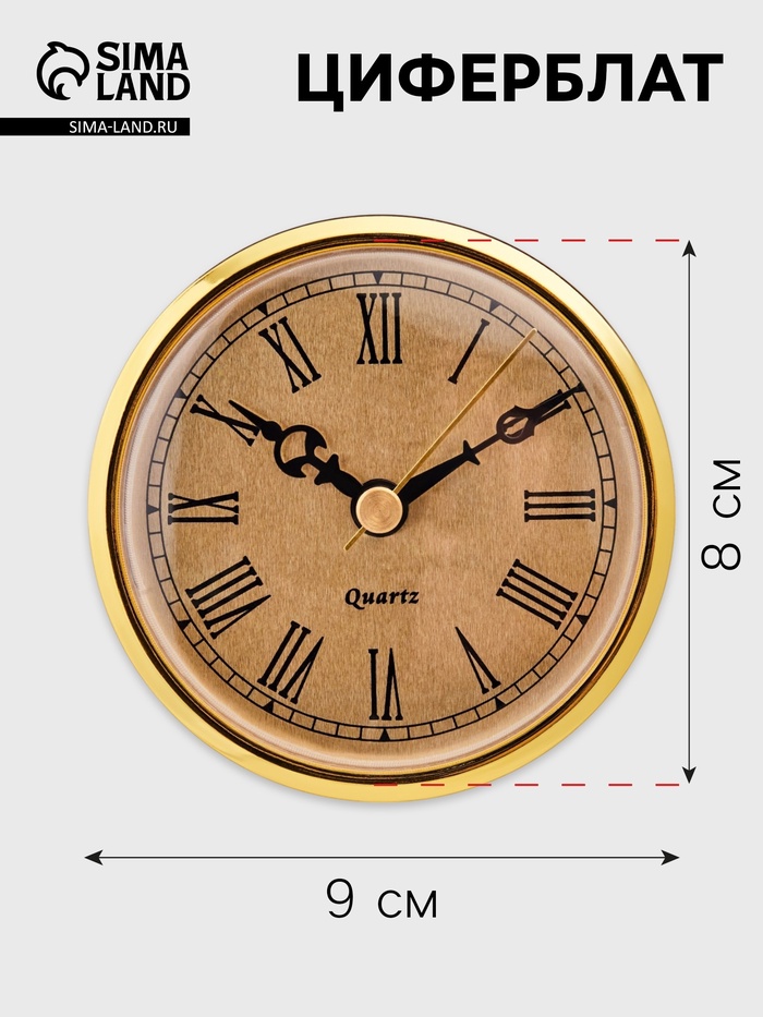 Вставка часы кварцевые, d-9 см, 1АА, плавный ход, золото