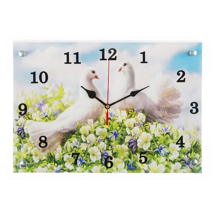 Часы=картина настенные, интерьерные «Пара голубей», бесшумные, 25×35 см