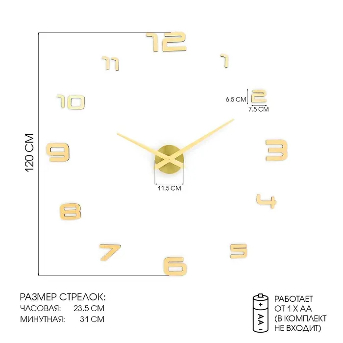 Часы настенные интерьерные большие, 3d «Акстелл», плавный ход, наклейка, d-120 см