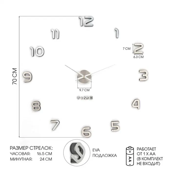 Часы настенные интерьерные большие, 3d «Акстелл»,плавный ход, наклейка, d-70 см