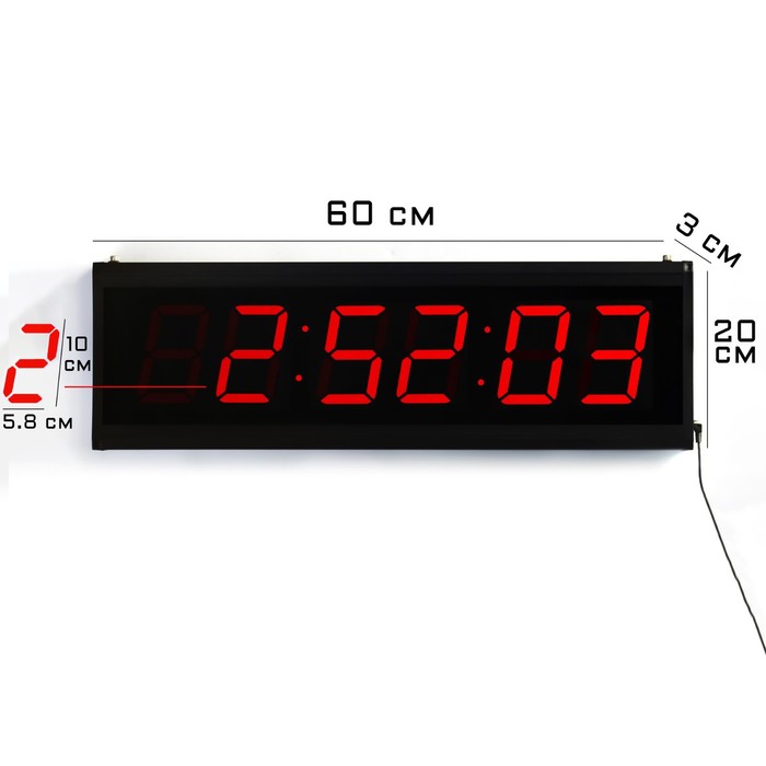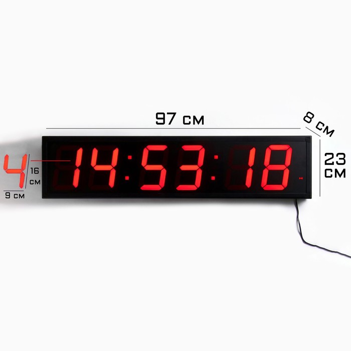 Часы электронные настенные "Соломон", таймер, секундомер, 97 х 8 х 23 см, красная индикация, чёрные
