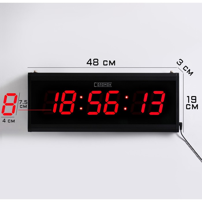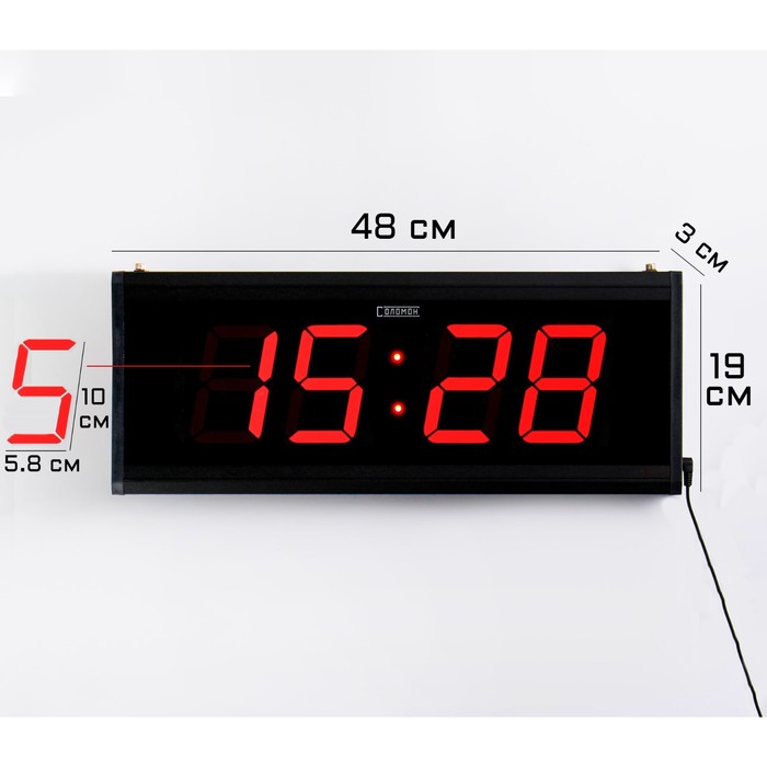 Часы настенные электронные "Соломон", 48 x 19 x 3 см, цифры красные 7.5 х 4 см