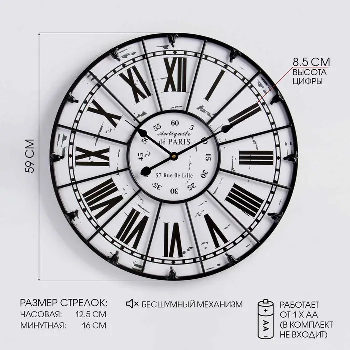 Часы настенные, серия: Лофт, «Бирмингем», плавный ход, d-59 см