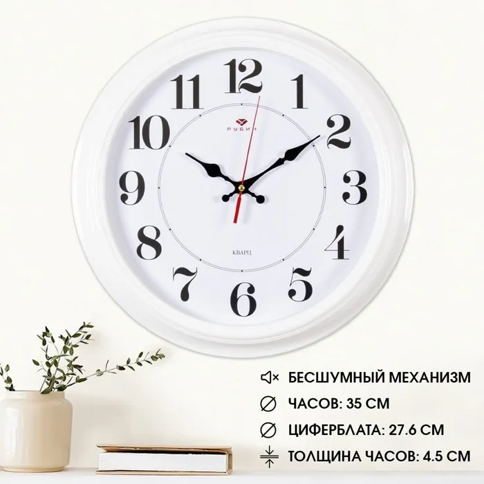 Часы настенные, интерьерные «Рубин», бесшумные, d=35 см, корпус белый