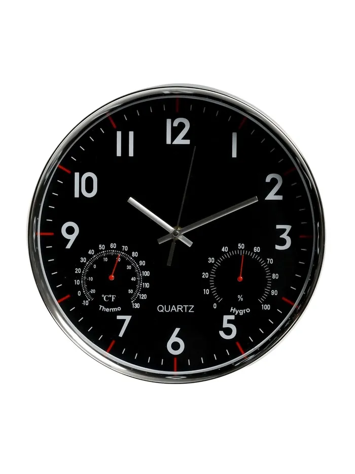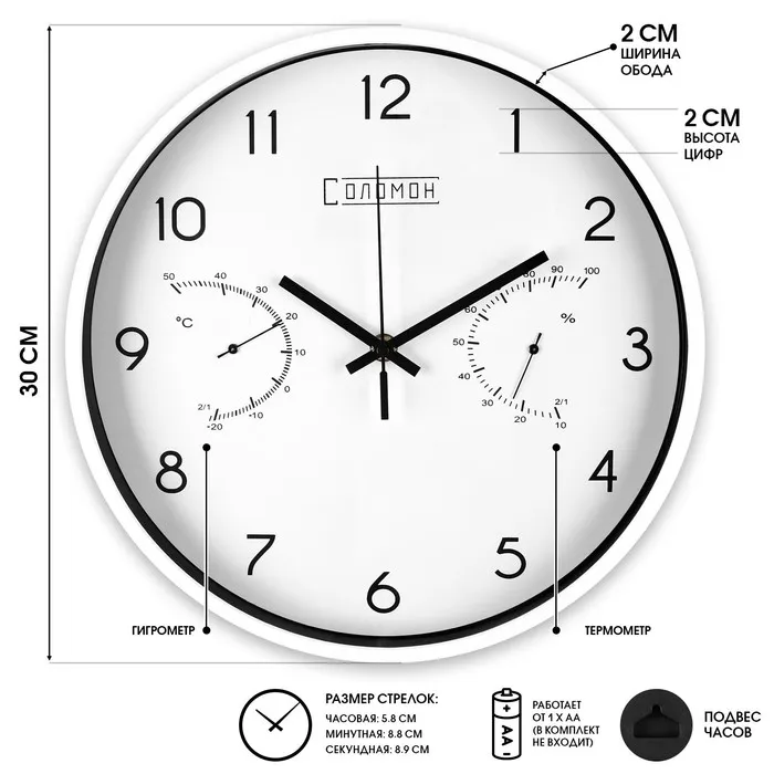 Часы настенные интерьерные «Соломон», плавный ход, d-30 см, термометр, гигрометр, белые