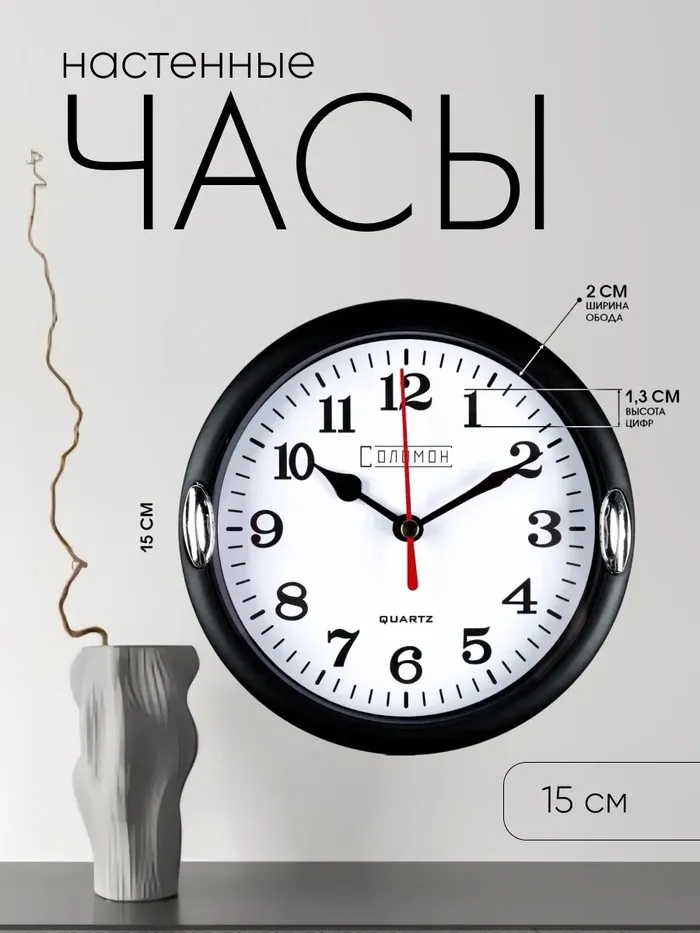 Часы настенные интерьерные "Джесика", для дома и дачи, d-15 см, циферблат d-13 см, черные