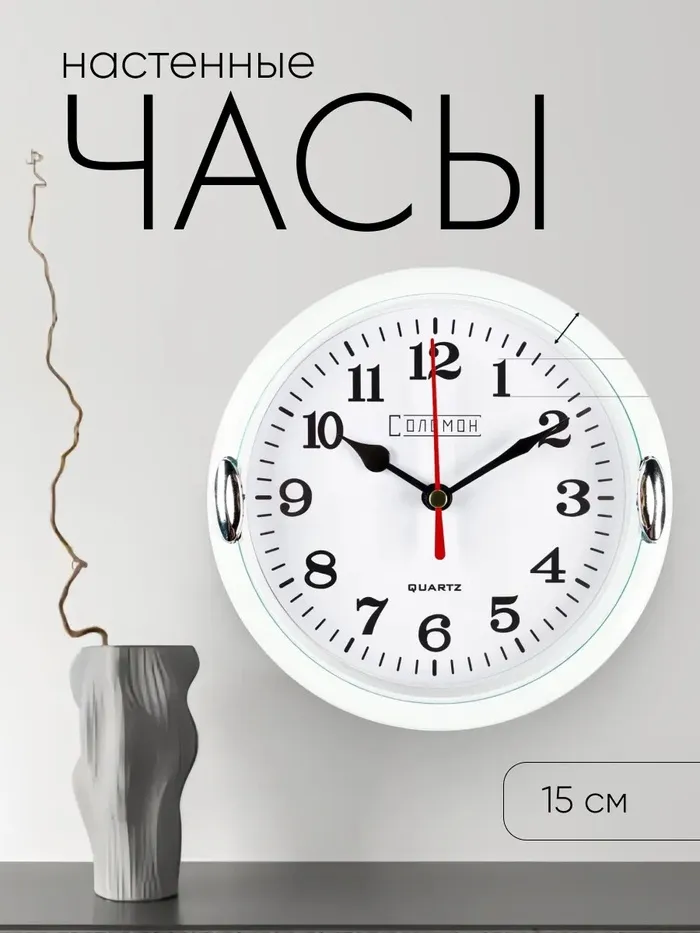 Часы настенные интерьерные "Джесика", для дома и дачи, d-15 см, циферблат d-13 см, белый обод