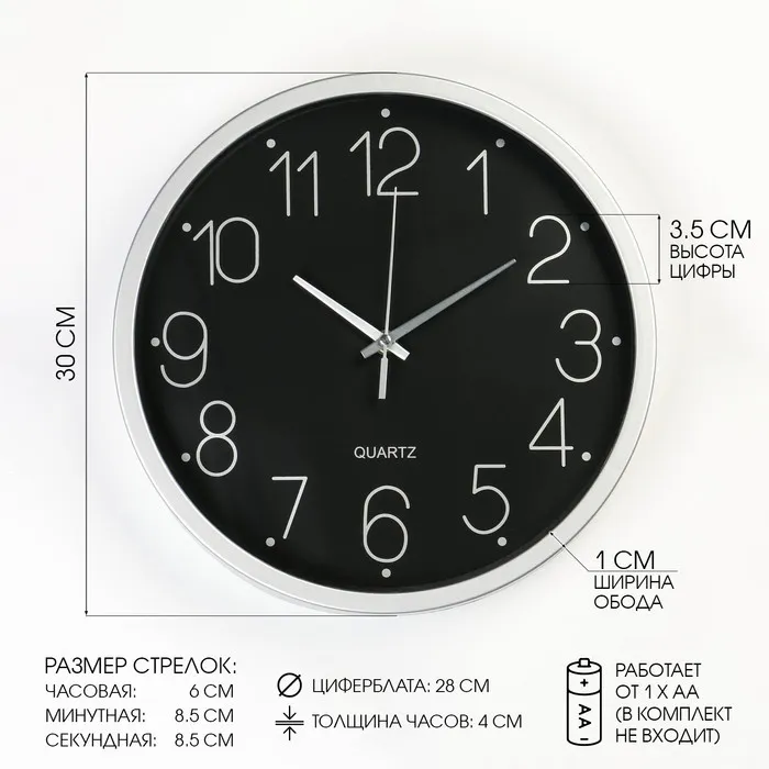 Часы настенные, интерьерные, бесшумные, d-30 см