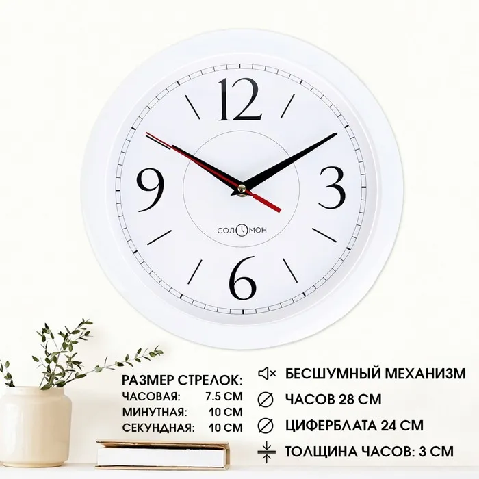 Часы настенные, d-28 см, интерьерные, Классика, бесшумные, белый обод