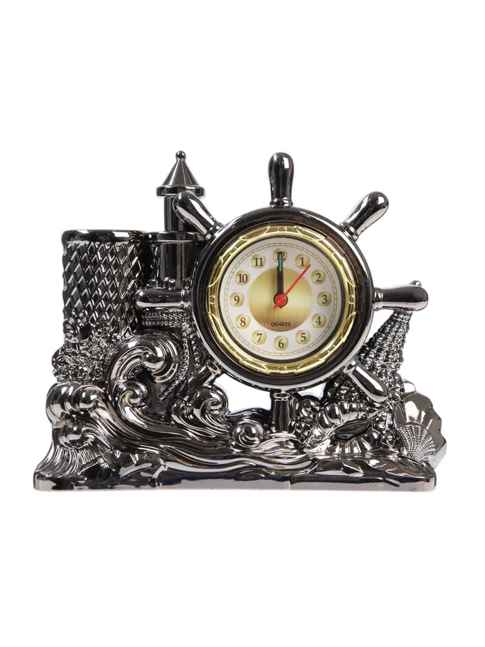 Часы настольные - органайзер для канцелярии будильник «Штурвал», 14×17×4 см