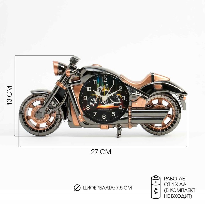 Часы - будильник настольные «Ретро мотоцикл», дискретный ход, d-7.5 см, 27×13 см, АА