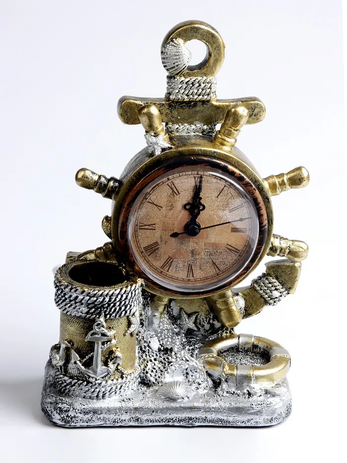 Часы настольные интерьерные «Штурвал», на батарейках, 13.5×7.5×20.5 см, d=8 см