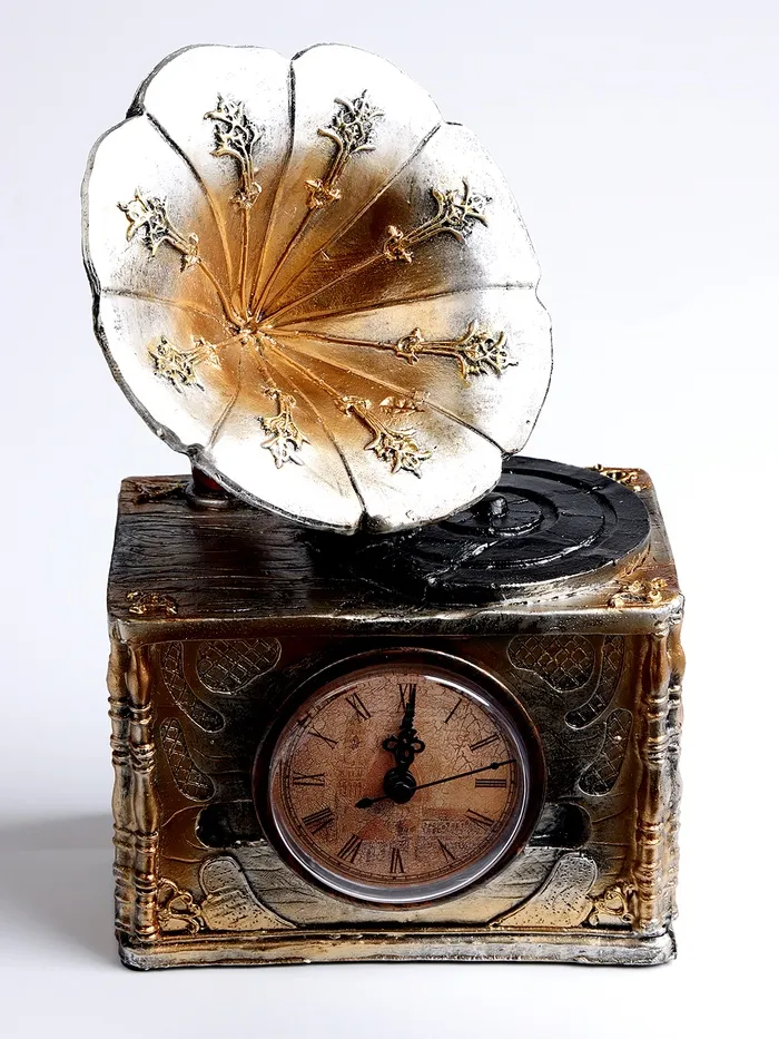 Часы настольные интерьерные «Граммофон», на батарейках, 15.5×9.5×24.5 см, d=7 см