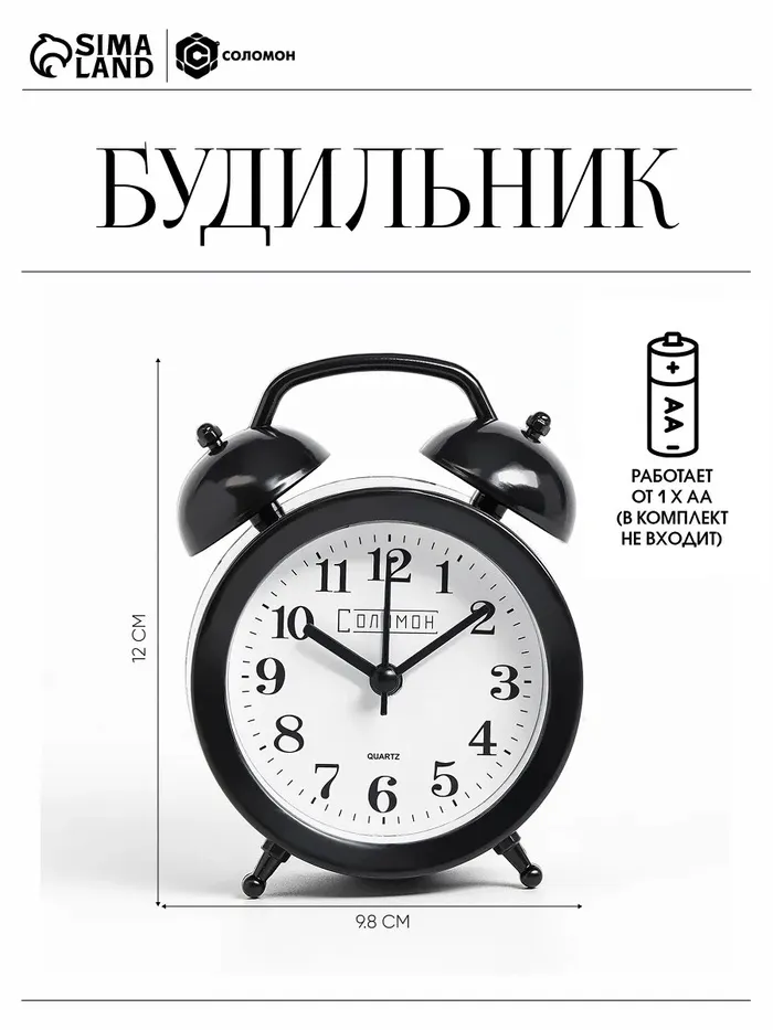 Часы - будильник настольные "Соломон", дискретный ход, 9.8 х 12 см, АА
