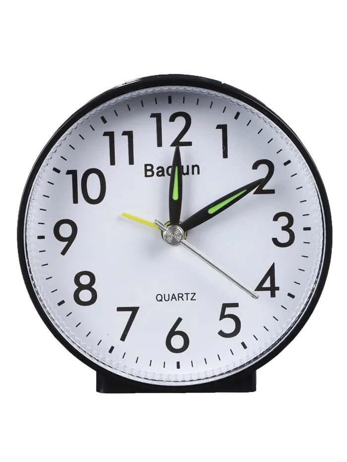 Часы будильник настольные, плавный ход, на батарейках, подсветка 11.4×12.5×4 см, d-9.6 см