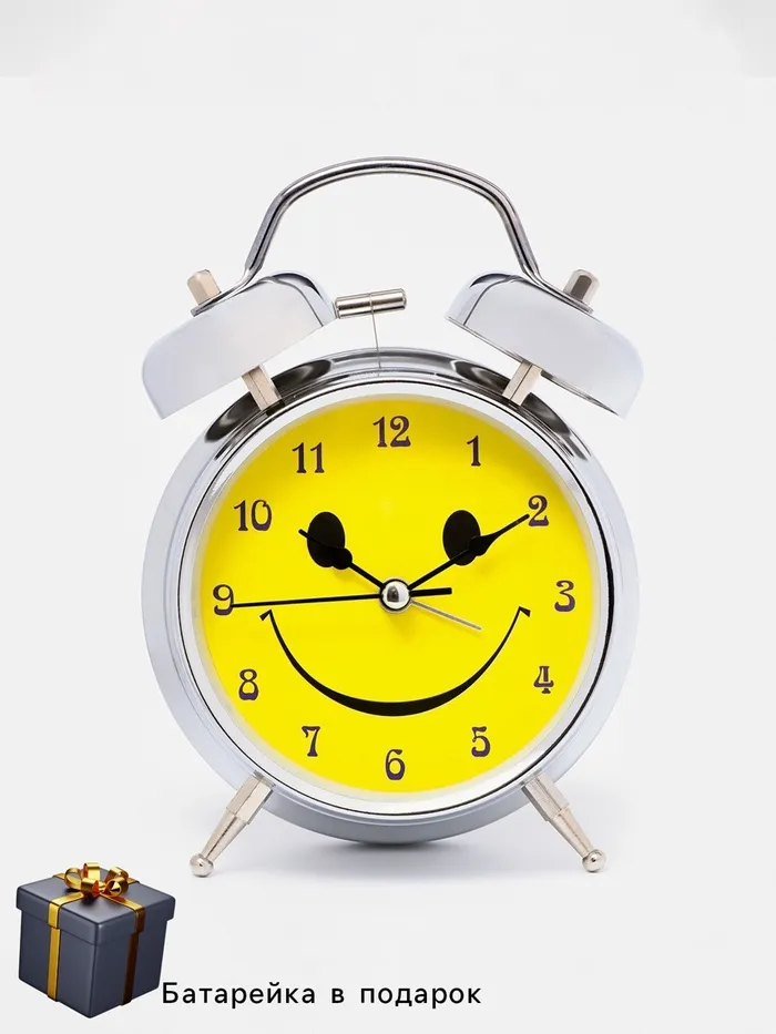Будильник «Смайл», циферблат d=11.5 см, с подсветкой, от батареек 1хАА, хром