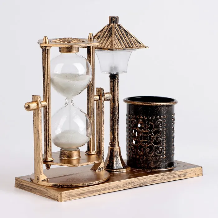 Песочные часы "Уличный фонарик", подсветка, органайзер для канцелярии, 6.5 х 15.5 х 14.5 см