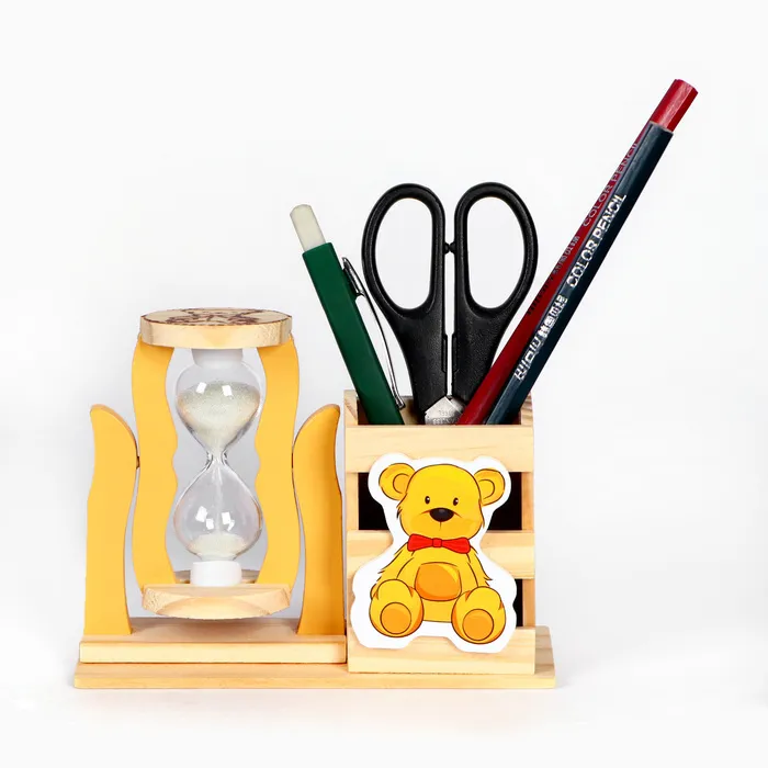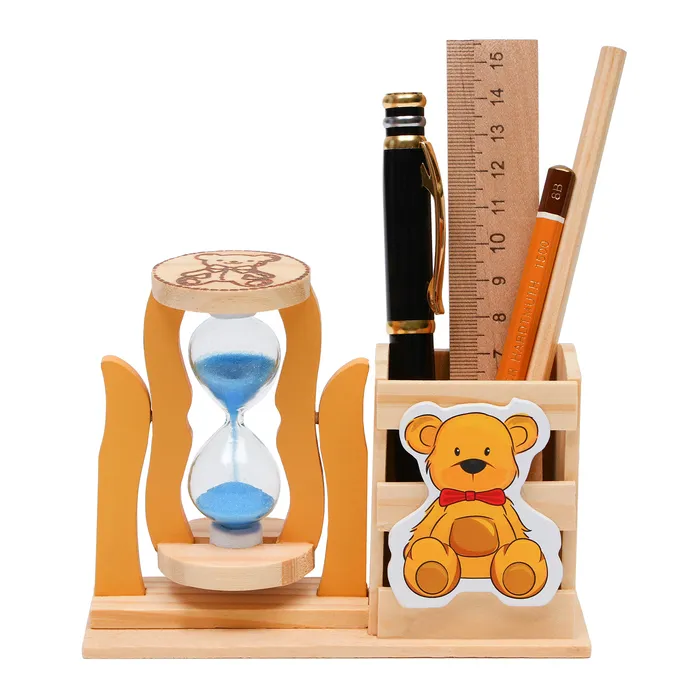 Песочные часы "Медвежонок", с органайзером для канцелярии, 13.5 х 13.5 х 10 см