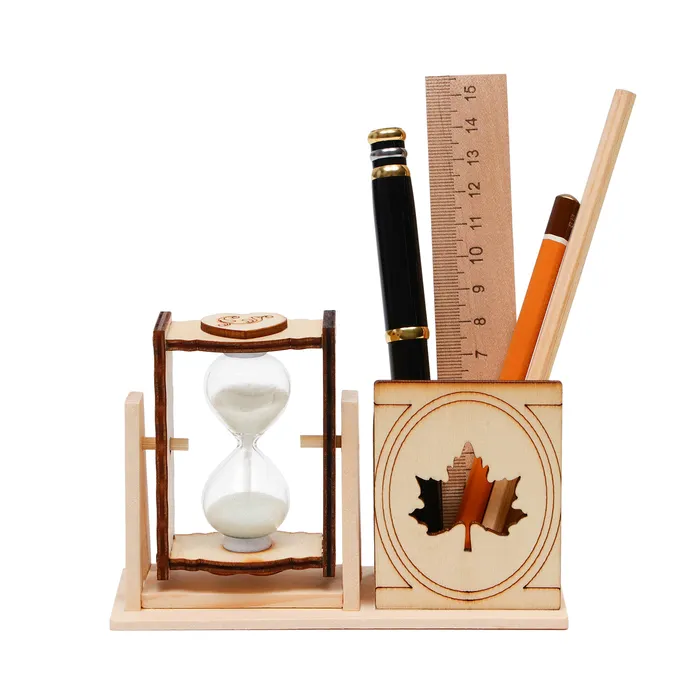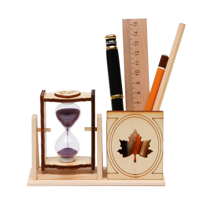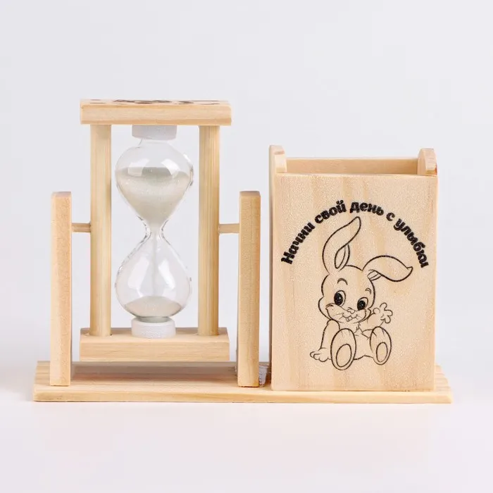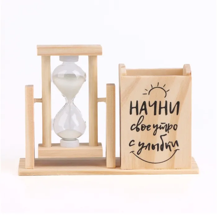 Песочные часы "Начни свой день с улыбки", с органайзером для канцелярии, 13.5 х 9.5 х 5 см