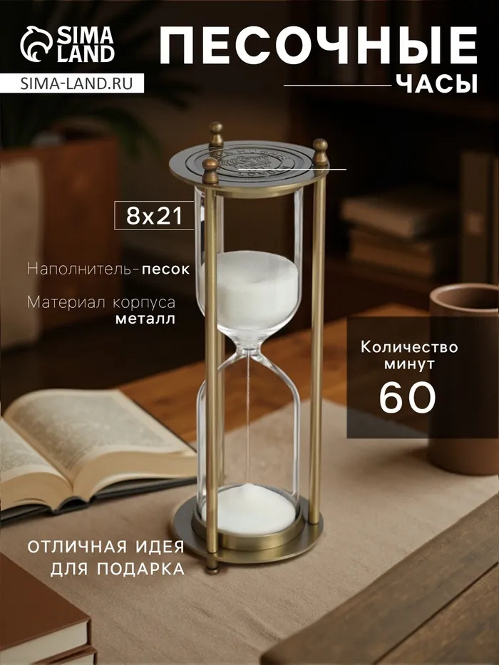 Песочные часы, на 60 минут, 8×21 см, металлические, медные