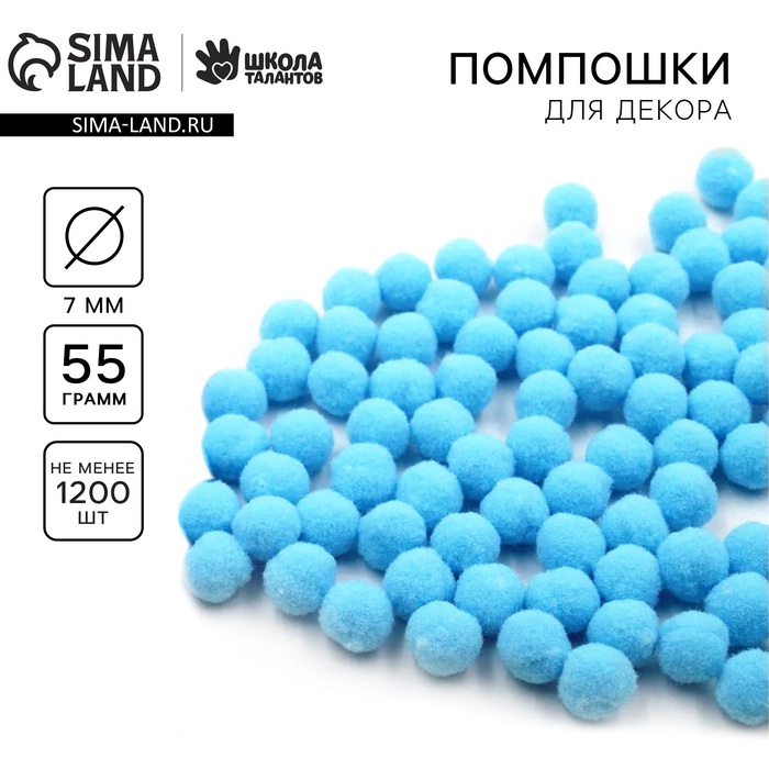 Набор текстильных деталей для декора. Помпоны для творчества «Голубые», 55 гр